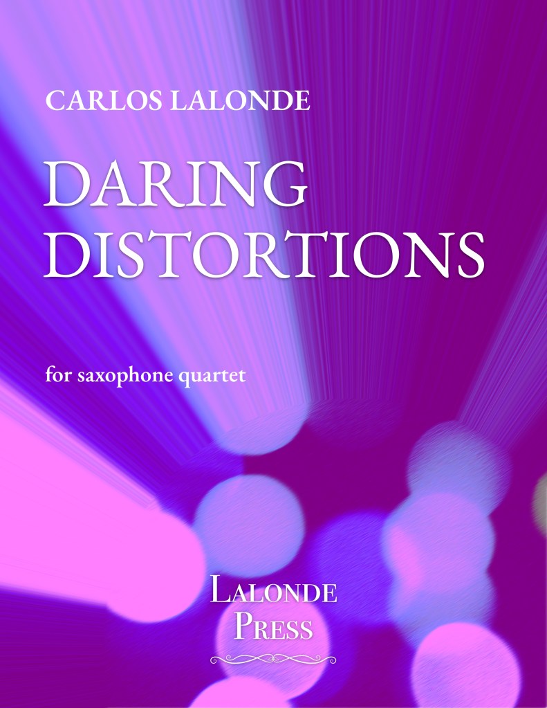 Daring Distortions was born from uncertainty. All I knew was that the saxophone quartet would be my substance of choice. Like many pieces, I began with an arbitrary set of pitches that formed a unique scale. It sounded off-kilter, menacing, even bluesy. From this set, I found a twisted groove that became the genesis for melodies just as skewed, at times even maniacal. The energy of the piece drives forward, moving from tight syncopations to boisterous cadenzas.
