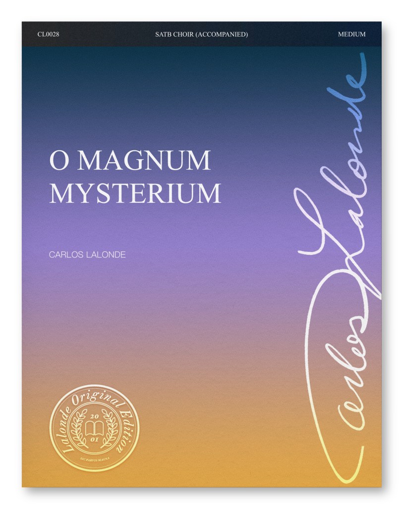 The O Magnum Mysterium text dates back to middle ages and has been set by many composers for hundreds of years. While the text’s origins are unknown, it conveys a beautiful and powerful scene of the Nativity scene. This new setting by Lalonde treats the text delicately and sensitively, as if one is viewing the scene of the Nativity in the first person. After, the perspective changes to the enormity of what transpires after this momentous event, foreshadowed by haunting dissonances and rich sonorities. Of course, joy and jubilant overtake the moment before returning to the humble scene during a dark and quiet night.